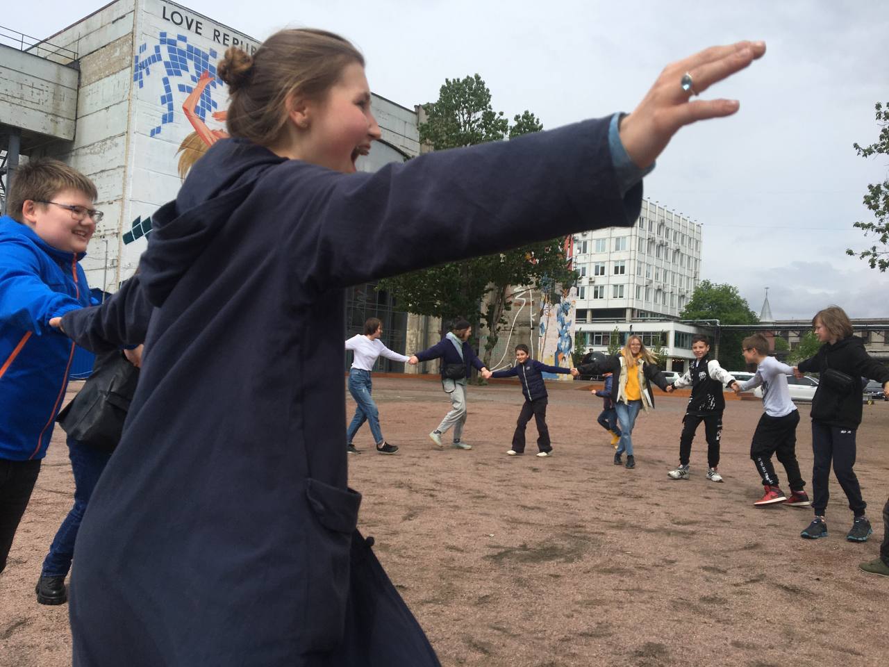 Прогулка по кластеру с обсуждением книг и дворовыми играми в хорошей компании на свежем воздухе.